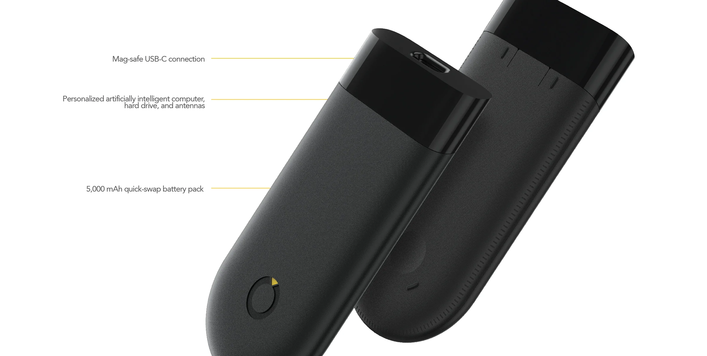 The camera housing found on either side of the headset contains two camera modules; one telephoto, and one wide angle. When paired together, the AI is able to see the entire situation with a 180° view, and with precision to match. Microphones facing externally and internally hear everything said by the officer and anyone around him/her.